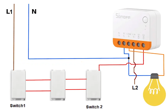 3. Verificar si hay alguna fase cercana al interruptor que tiene el retorno (2), ya que la instalación requiere que el relay tenga una fase directa.